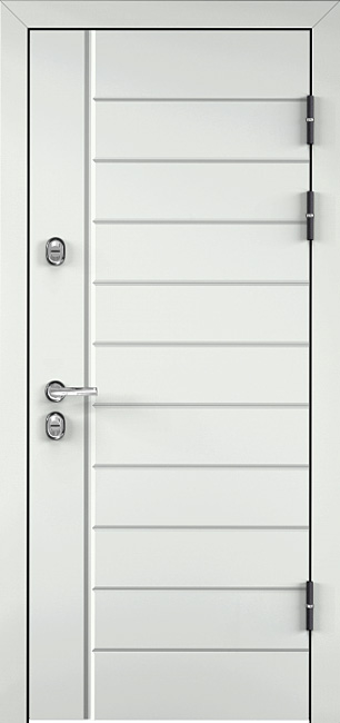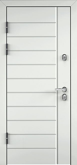 Эта белоснежная входная дверь с линиями №30 станет стильным и надежным элементом для любого интерьера. Благодаря отделке из панелей МДФ с ПВХ-покрытием, дверь выглядит элегантно и обладает высокой устойчивостью к внешним повреждениям. Внешний вид дверного полотна дополнен утонченными линиями, что придает ей современный, лаконичный вид. Прочный каркас из профильных труб 50х25 мм и лист металла толщиной 2 мм обеспечивают отличную защиту и долгий срок службы. Два контура резинового уплотнителя эффективно защищают от шума и холода, создавая комфорт в помещении. Замки Просам и Мосрентген с тремя ригелями гарантируют надежную безопасность. Дополнительно можно заказать зеркала, стеклопакеты и кованые элементы, что делает дверь универсальной для разных дизайнерских решений. Квартирная дверь входная белоснежного цвета с линиями №30 от производителя: быстрое изготовление и монтаж в Сергиевом Посаде, индивидуальные размеры, широкий выбор материалов и фурнитуры, официальная гарантия до 10 лет.