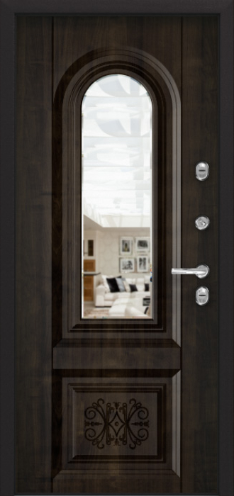 Дверь тёплая входная в частный дом №49 создана для тех, кто ценит надёжность и практичность без лишних компромиссов. Конструкция из профильных труб и стали толщиной 2 мм обеспечивает прочность и устойчивость к взлому, а двойной контур уплотнителя защищает от сквозняков и влаги. Особенность модели — встроенное зеркало, которое не только добавляет удобства, но и визуально расширяет пространство прихожей. Снаружи и внутри дверь отделана МДФ-накладками, материалом, который хорошо переносит повседневные нагрузки, не боится царапин и сохраняет привлекательный вид долгие годы. Замковая система сочетает сувальдный и цилиндровый механизмы от российских производителей, что делает вход максимально безопасным. Модель подходит для установки как в частный дом, так и в квартиру или офис, а возможность комбинировать отделку и дополнять конструкцию стеклопакетами или ковкой открывает простор для индивидуального дизайна. Дверь теплая входная в частный дом №49 от производителя: быстрое изготовление и монтаж в Сергиевом Посаде, индивидуальные размеры, широкий выбор материалов и фурнитуры, официальная гарантия до 10 лет.