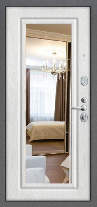 Белый цвет придаёт этой модели лёгкость и универсальность, а зеркало на внутренней стороне делает её особенно удобной для квартир и офисов, где важно сочетать практичность и эстетику. Дверь входная металлическая белая с зеркалом №51 изготовлена на основе прочного стального каркаса с листом металла толщиной 2 мм и усилена рёбрами жёсткости, что обеспечивает надёжность и долговечность. Плиты МДФ во внутренней и внешней отделке устойчивы к повреждениям и сохраняют аккуратный вид даже при интенсивном использовании. Два контура уплотнения помогают удерживать тепло и блокировать сквозняки, а пара замков — сувальдный Просам и цилиндровый Мосрентген — обеспечивают высокий уровень защиты. Зеркальная вставка экономит пространство и визуально расширяет коридор, делая дверь не только защитной, но и функциональной частью интерьера. Дверь входная металлическая белая с зеркалом №51 от производителя: быстрое изготовление и монтаж в Сергиевом Посаде, индивидуальные размеры, широкий выбор материалов и фурнитуры, официальная гарантия до 10 лет.