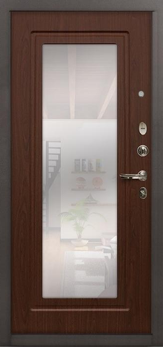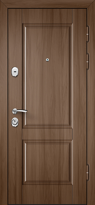 Входная дверь с зеркальными вставками №56 сочетает надежность металлической конструкции и удобство функционального декора. Зеркало не только украшает интерьер, но и делает помещение визуально просторнее, что особенно ценно для квартир и офисов. Для частного дома такая дверь добавляет практичности — всегда можно взглянуть на отражение, выходя на улицу. Отделка выполнена из панелей МДФ с ПВХ-покрытием, устойчивым к царапинам и мелким повреждениям, что обеспечивает долговечность и сохранение первоначального вида. Каркас собран из профильной трубы, усилен рёбрами жёсткости и металлическим листом толщиной 2 мм, благодаря чему дверь выдерживает серьёзные нагрузки и обеспечивает защиту от взлома. Два контура уплотнения препятствуют проникновению сквозняков и пыли, а резиновый уплотнитель сохраняет плотное прилегание полотна. Замковая система включает надежные российские механизмы Просам и Мосрентген, которые отличаются стабильной работой и высоким ресурсом. Дверь №56 — это прочность, удобство и современный дизайн в одной конструкции. Входная дверь с зеркальными вставками №56 от производителя: быстрое изготовление и монтаж в Сергиевом Посаде, индивидуальные размеры, широкий выбор материалов и фурнитуры, официальная гарантия до 10 лет.