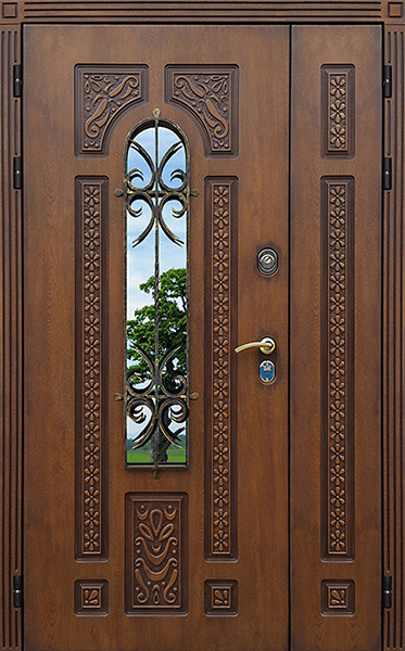 Двойная входная дверь с большим стеклом и ковкой для дома №25 сочетает в себе стиль и надежность, предлагая великолепное решение для вашего дома. Внешняя и внутренняя отделка выполнены из панелей МДФ с ПВХ, что придает двери долговечность и устойчивость к механическим повреждениям, а также способствует легкости ухода. Стеклопакет в комбинации с изысканным кованым узором создаёт не только эстетическое наслаждение, но и позволяет улучшить светопроникновение в помещении. Двойная входная дверь с большим стеклом и ковкой для дома №25 от производителя: быстрое изготовление и монтаж в Сергиевом Посаде, индивидуальные размеры, широкий выбор материалов и фурнитуры, официальная гарантия до 10 лет.