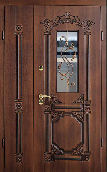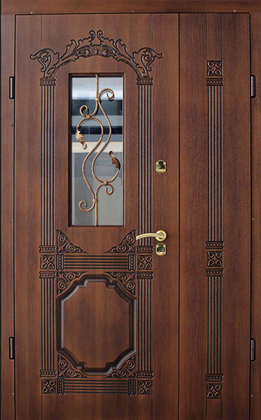 Уличная двухстворчатая дверь со стеклом и кованой решеткой №26 — это не только надежная защита для вашего дома, но и элемент, который подчеркнет его стиль и индивидуальность. Внешняя отделка из МДФ с ПВХ обеспечивает долговечность, устойчивость к внешним воздействиям и сохранение эстетического вида на долгое время. Добавление кованой решетки и стеклопакета придает двери элегантности, а также улучшает светопропускание, создавая комфортное освещение в вашем помещении. Уличная двухстворчатая дверь со стеклом и кованой решеткой №26 от производителя: быстрое изготовление и монтаж в Сергиевом Посаде, индивидуальные размеры, широкий выбор материалов и фурнитуры, официальная гарантия до 10 лет.