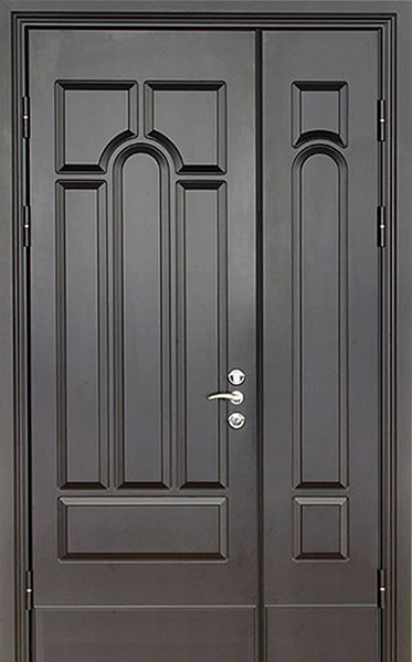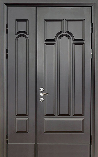 Металлическая двухстворчатая дверь для дома цвета графит №27 – это стильное и надежное решение для вашего жилья. Внешняя и внутренняя отделка выполнены из МДФ, что придает двери изысканный вид и увеличивает её стойкость к механическим повреждениям. Цвет графит придаёт двери современный и элегантный оттенок, который легко впишется в интерьер как частных домов, так и современных офисов. Металлическая двухстворчатая дверь для дома цвета графит №27 от производителя: быстрое изготовление и монтаж в Сергиевом Посаде, индивидуальные размеры, широкий выбор материалов и фурнитуры, официальная гарантия до 10 лет.