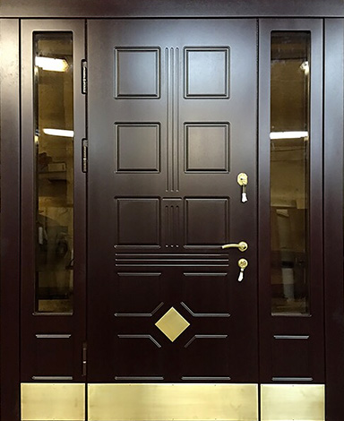 Натуральное дерево в отделке придаёт конструкции основательность и благородный внешний вид, а металлический каркас с листом стали толщиной 2 мм и системой ребер жёсткости обеспечивает надёжную защиту и долговечность. Входная дверь с остеклением №70 особенно востребована в частных домах и коттеджах, где важна не только безопасность, но и эстетика. Стеклянные элементы делают полотно визуально легче и наполняют прихожую естественным светом, при этом оставаясь частью прочной конструкции. Для комфорта предусмотрены два контура уплотнения, а терморазрыв в коробке и полотне защищает от промерзания и сохраняет тепло даже в сильные морозы. Итальянские замки Cisa цилиндрового и сувальдного типа дополняют высокий уровень безопасности. Возможность добавить кованые элементы, зеркало или стеклопакет позволяет адаптировать модель под архитектуру дома, подчёркивая индивидуальность и вкус владельцев. Входная дверь с остеклением №70 от производителя: быстрое изготовление и монтаж в Сергиевом Посаде, индивидуальные размеры, широкий выбор материалов и фурнитуры, официальная гарантия до 10 лет.