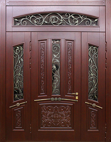 Эта модель создана для тех, кто ценит солидность и внушительный внешний вид парадного входа. Натуральный массив дуба в отделке придаёт дверному полотну статусный характер, а стеклянные вставки позволяют добавить света и лёгкости фасаду дома. При этом основа конструкции выполнена из прочной профильной трубы с использованием листа металла толщиной 2 мм и ребер жёсткости, что гарантирует надёжность и устойчивость к взлому. Двустворчатая входная дверь со стеклом №39 удобна для широких проёмов коттеджей и частных домов, обеспечивая не только безопасность, но и удобство при внесении крупногабаритной мебели. Итальянские замки Cisa сочетают в себе высокий класс защиты и плавность хода механизма, а наличие двух контуров уплотнения дополнительно защищает от сквозняков. Возможность комбинировать отделку, добавить зеркало, витраж или кованые элементы делает модель гибкой для индивидуального дизайна и подчеркивает её представительский статус. Двустворчатая входная дверь со стеклом №39 от производителя: быстрое изготовление и монтаж в Сергиевом Посаде, индивидуальные размеры, широкий выбор материалов и фурнитуры, официальная гарантия до 10 лет.