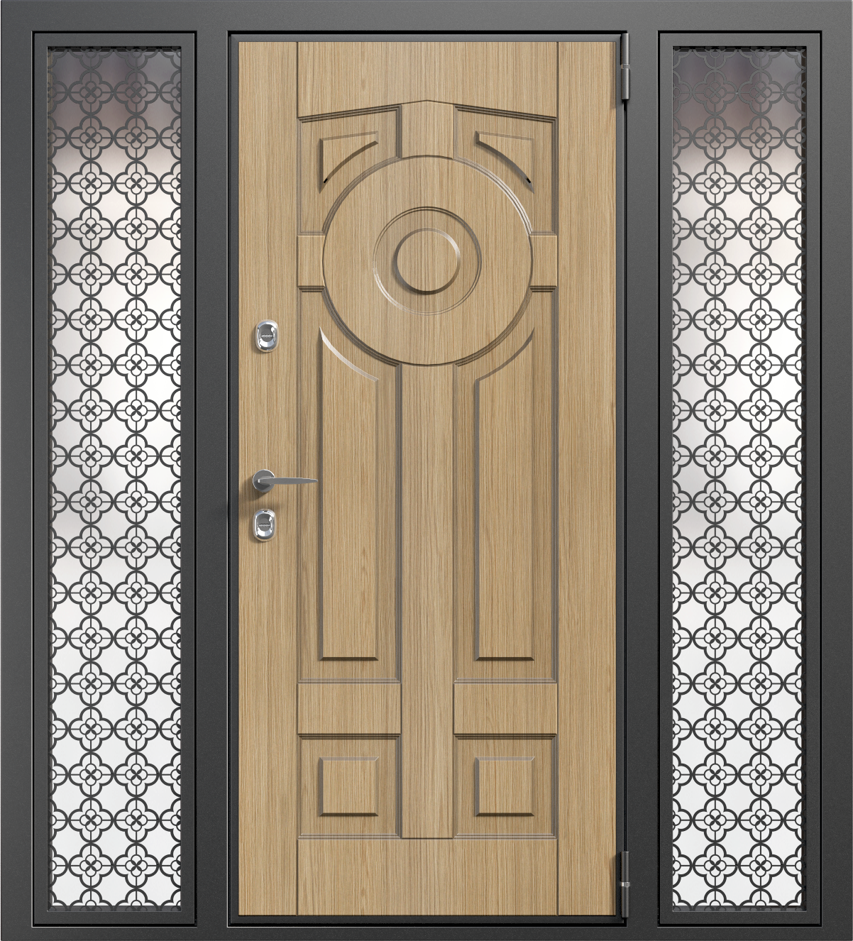 Входная металлическая дверь с резьбой для широкого проема №7 станет отличным выбором для установки в местах с большими входами. Благодаря прочной конструкции, выполненной из профильной трубы 50x25 мм и металла толщиной 2 мм, она обеспечит высокую безопасность и долговечность. Внешняя отделка из плиты МДФ придаёт двери стильный и элегантный вид, который будет гармонично сочетаться с разными архитектурными стилями. Замки Kale Kilit с тремя ригелями гарантируют защиту от взлома. Дополнительно дверь оснащена резиновым уплотнителем с двумя контурами, что помогает минимизировать шум и сохранить тепло. Несмотря на отсутствие терморазрыва, эта модель будет отличным решением для широких проемов в частных домах и коммерческих помещениях. Возможность комбинировать отделки и установить дополнительные элементы, такие как стеклопакет, зеркало или кованые детали, позволяет адаптировать дверь под любые требования. Входная металлическая дверь с резьбой для широкого проема №7 от производителя: быстрое изготовление и монтаж в Сергиевом Посаде, индивидуальные размеры, широкий выбор материалов и фурнитуры, официальная гарантия до 10 лет.